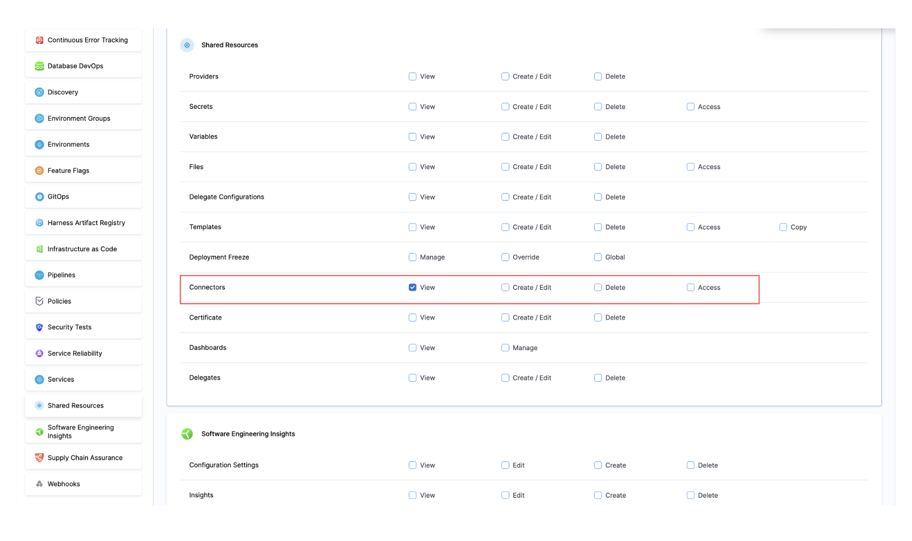 Connectors are shared resources in the Harness account, meaning multiple users can use them. Since they are shared, they appear in the Shared Resources section when creating a Resource Group (RG) in the ACL (Access Control List) module. Admins can create Resource Groups (RGs) for connectors by selecting the relevant connectors.