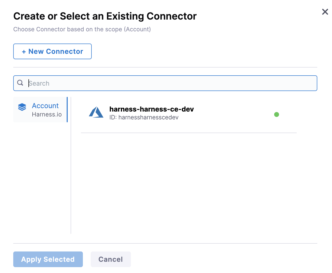 If you have not added an Azure cloud account, see Connect to an Azure Connector.