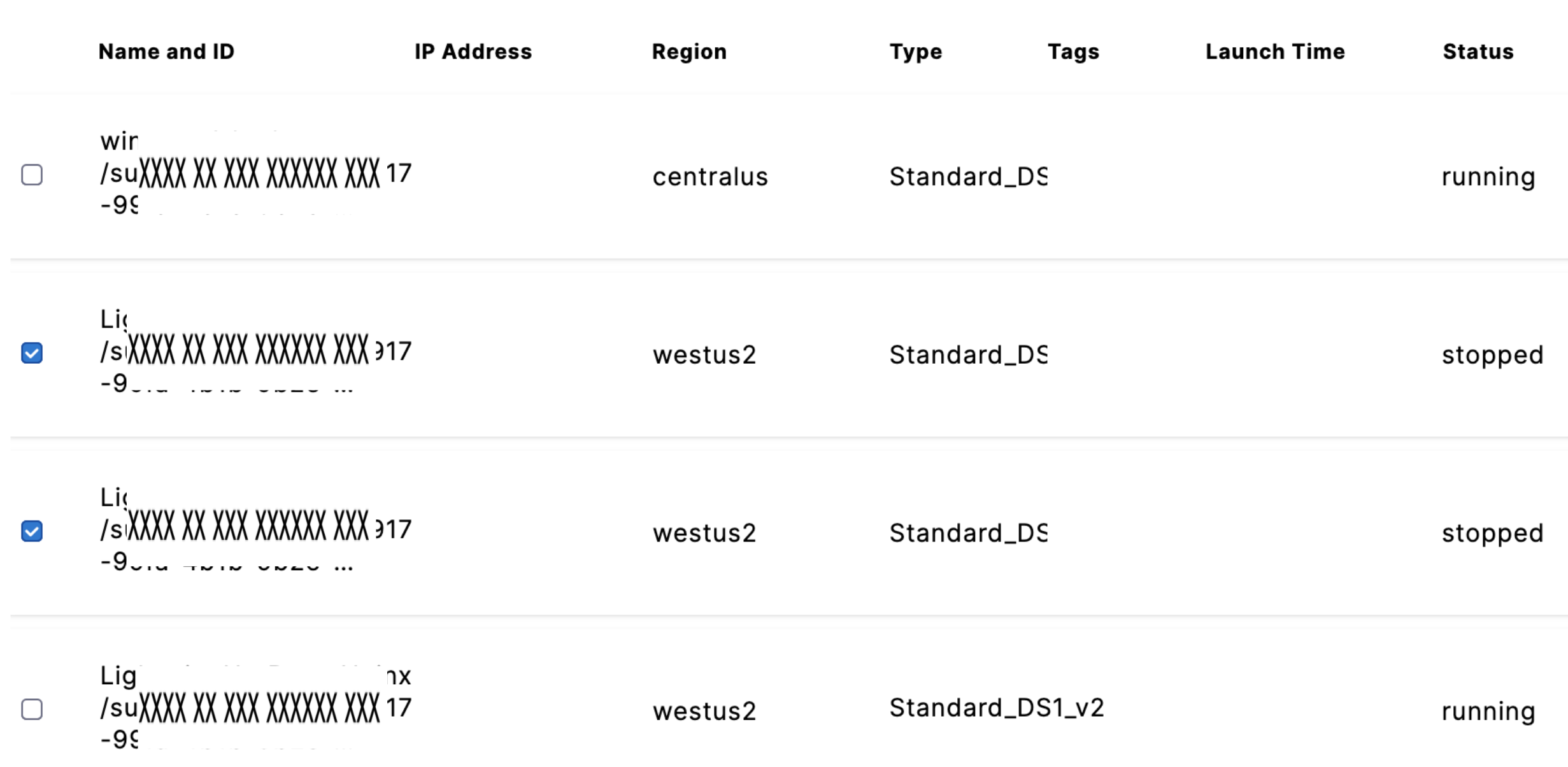 Select the instances that you want to manage using the AutoStopping rules. You can use the search option to search the instances.