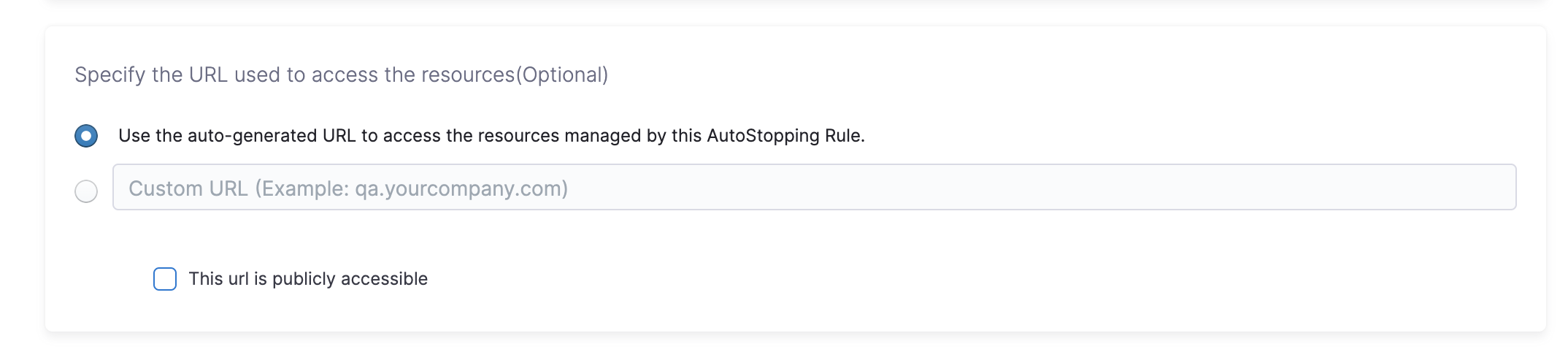 Auto-generated URL You can use the auto-generated URL to access the resources managed by this AutoStopping Rule.
