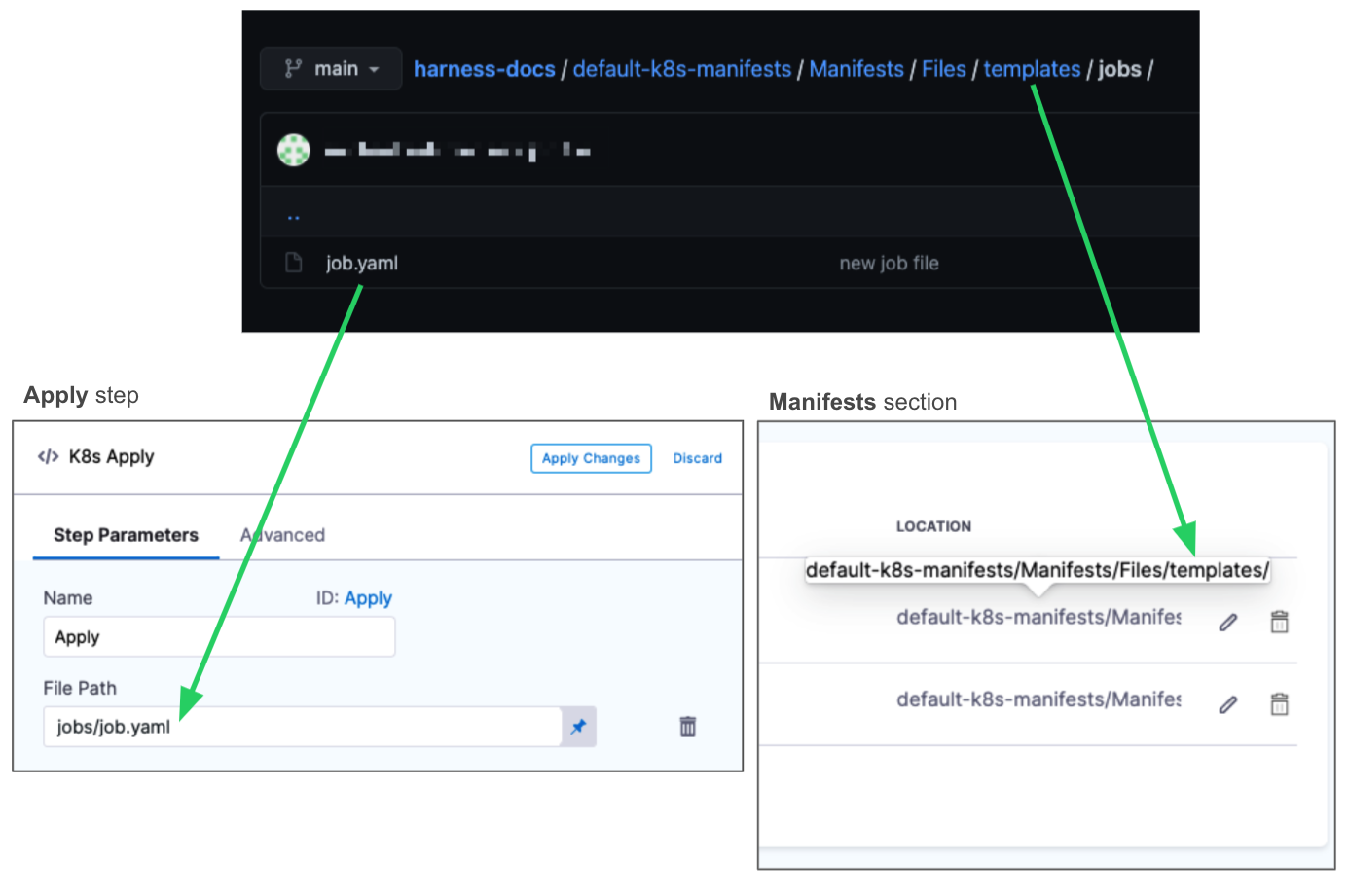 - The path to the manifest for the Apply step must be subordinate to the path for the manifest in the Manifests section of the Service Definition. The manifest cannot be in the same folder as Manifests.