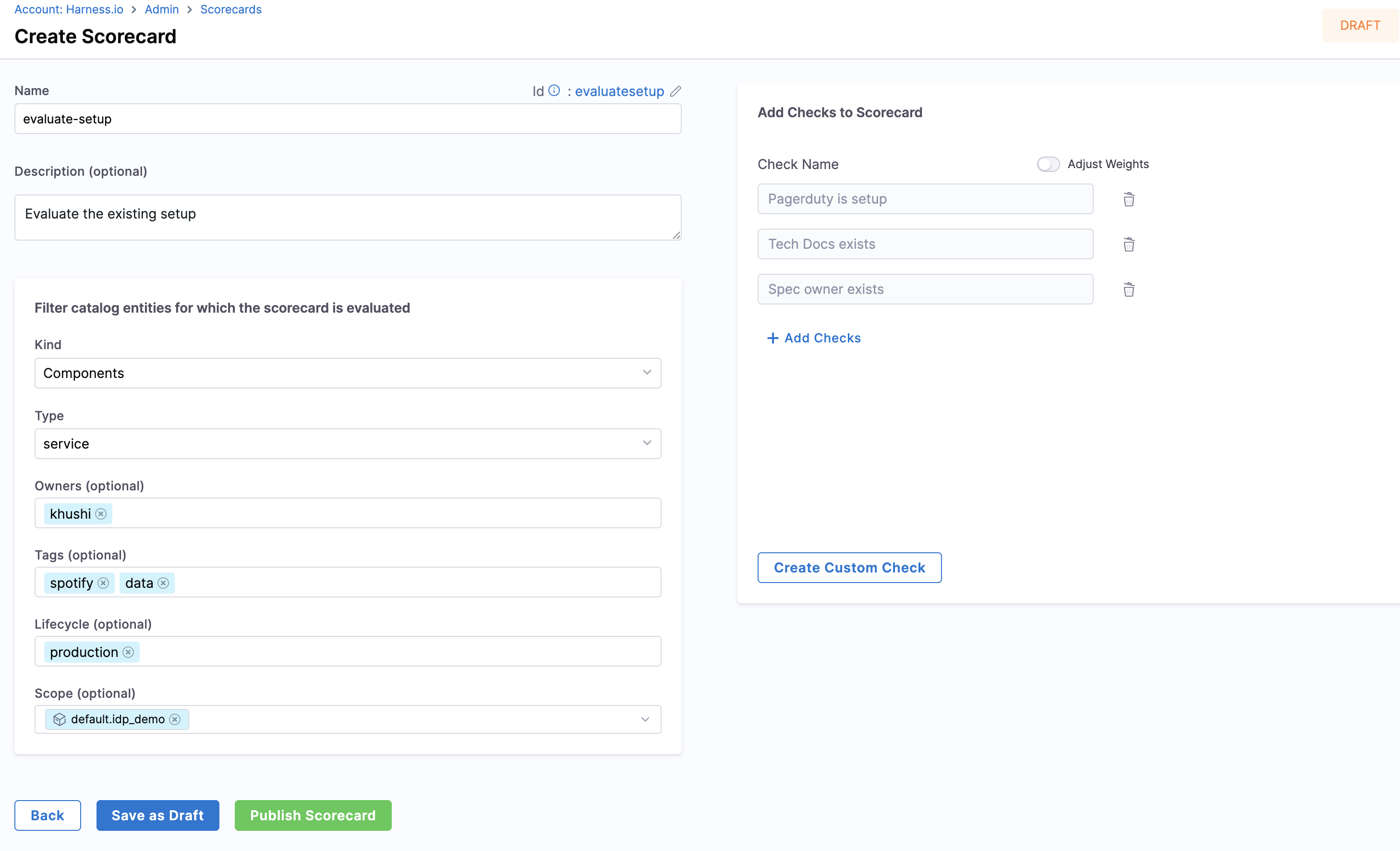 Add the Checks, then select Publish Scorecard.