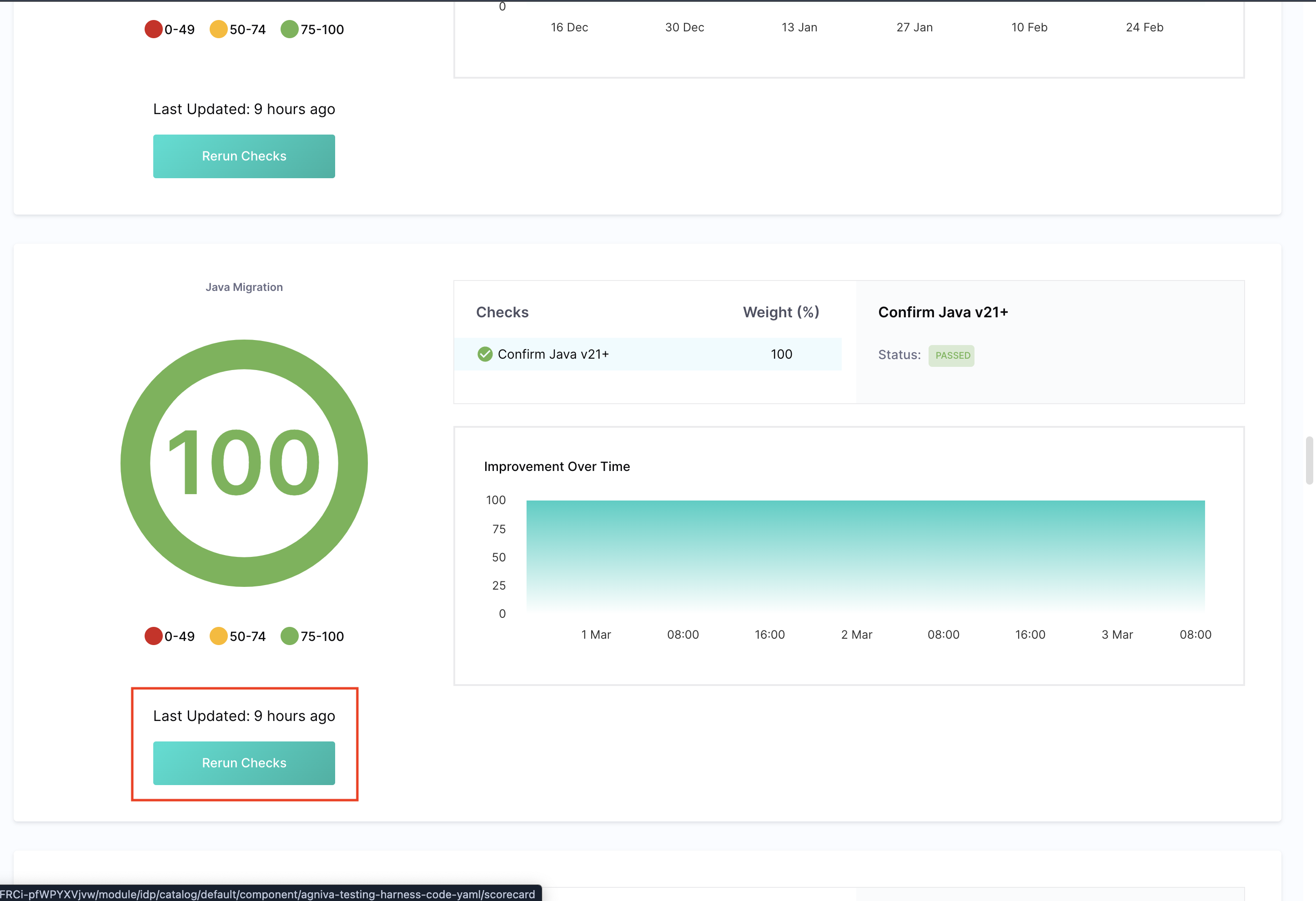 On the Scorecard page, locate the specific Scorecard you want to refresh and click "Rerun Checks".