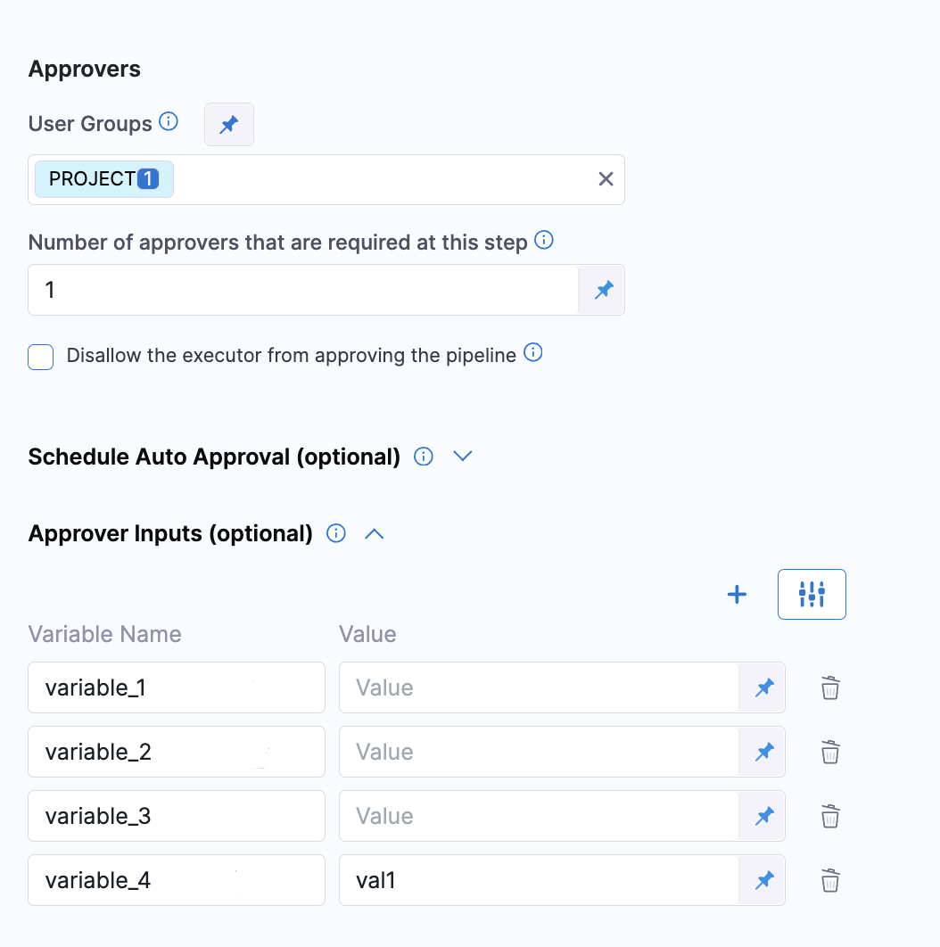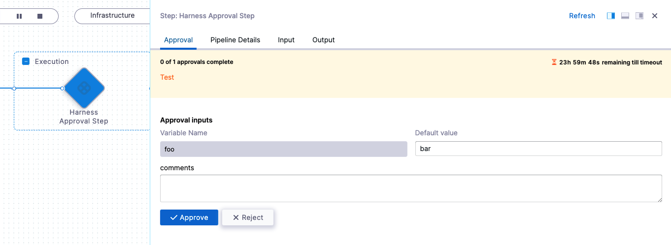 <+pipeline.stages.Shell_Script.spec.execution.steps.Harness_Approval_Step.output.approverInputs.foo> == 1