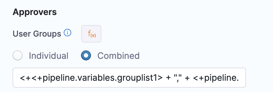 Combined: Specify a combined expression for all user groups that need to be configured as Approvers. This expression must resolve to a list of strings.
