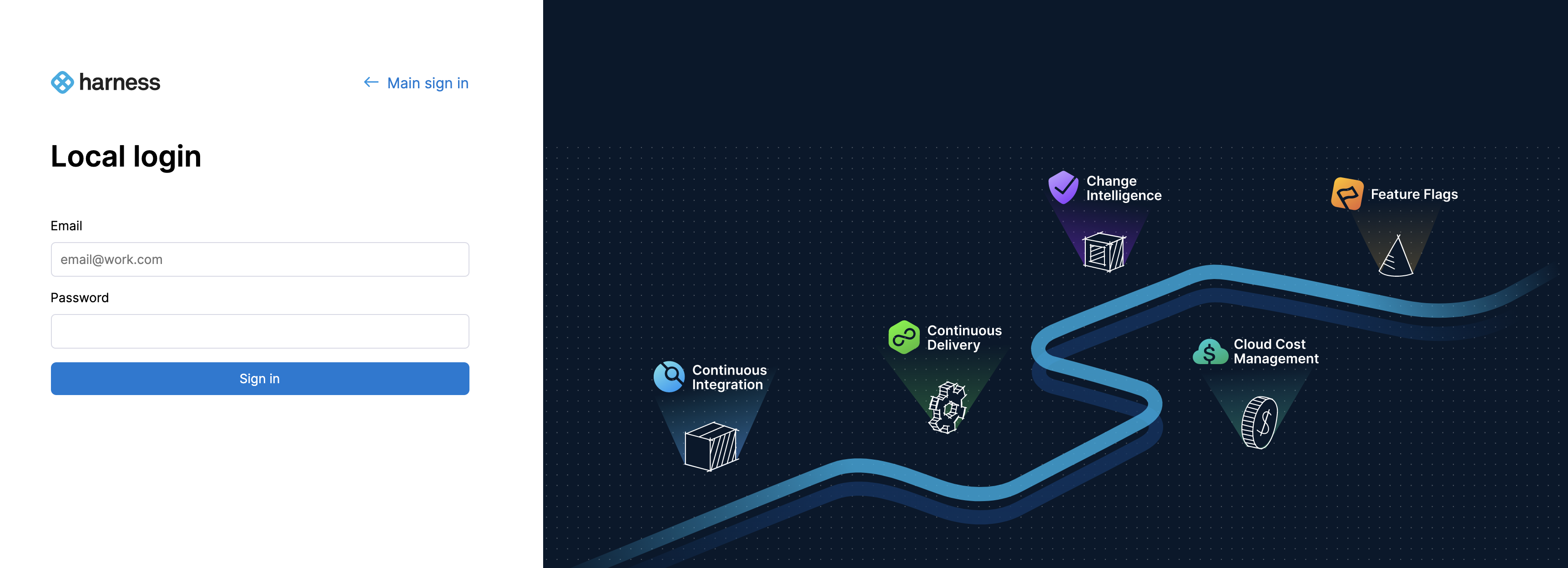 To prevent lockouts or in the event of OAuth downtime, a user that has Account Admin assigned on All Account Level Resources or All Resources Including Child Scopes can use the Local login URL https://app.harness.io/auth/#/local-login