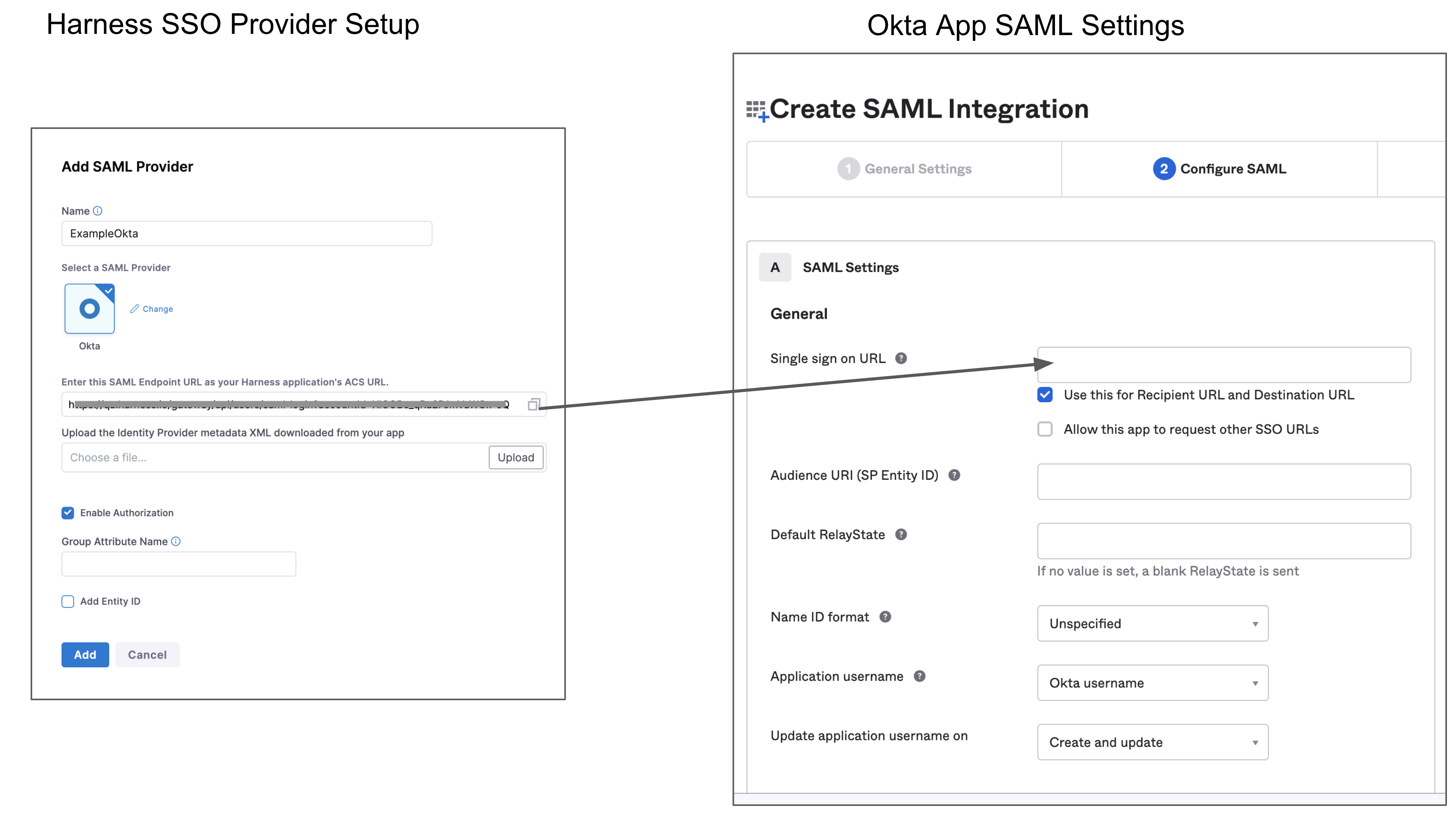 To set up Harness with Okta as a SAML SSO provider, you exchange the necessary information between your Okta app and Harness.