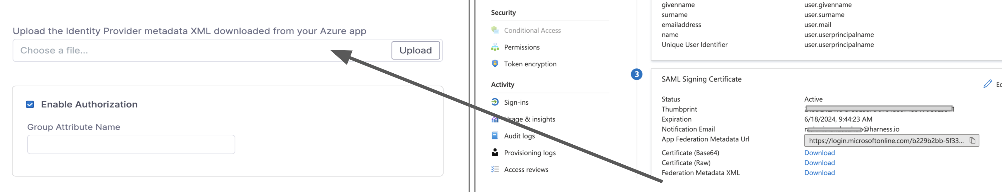 - SAML metadata file: This file is provided by your SAML provider app. You upload this file into the Harness Single Sign-On (SSO) Provider dialog to integrate the app with Harness.