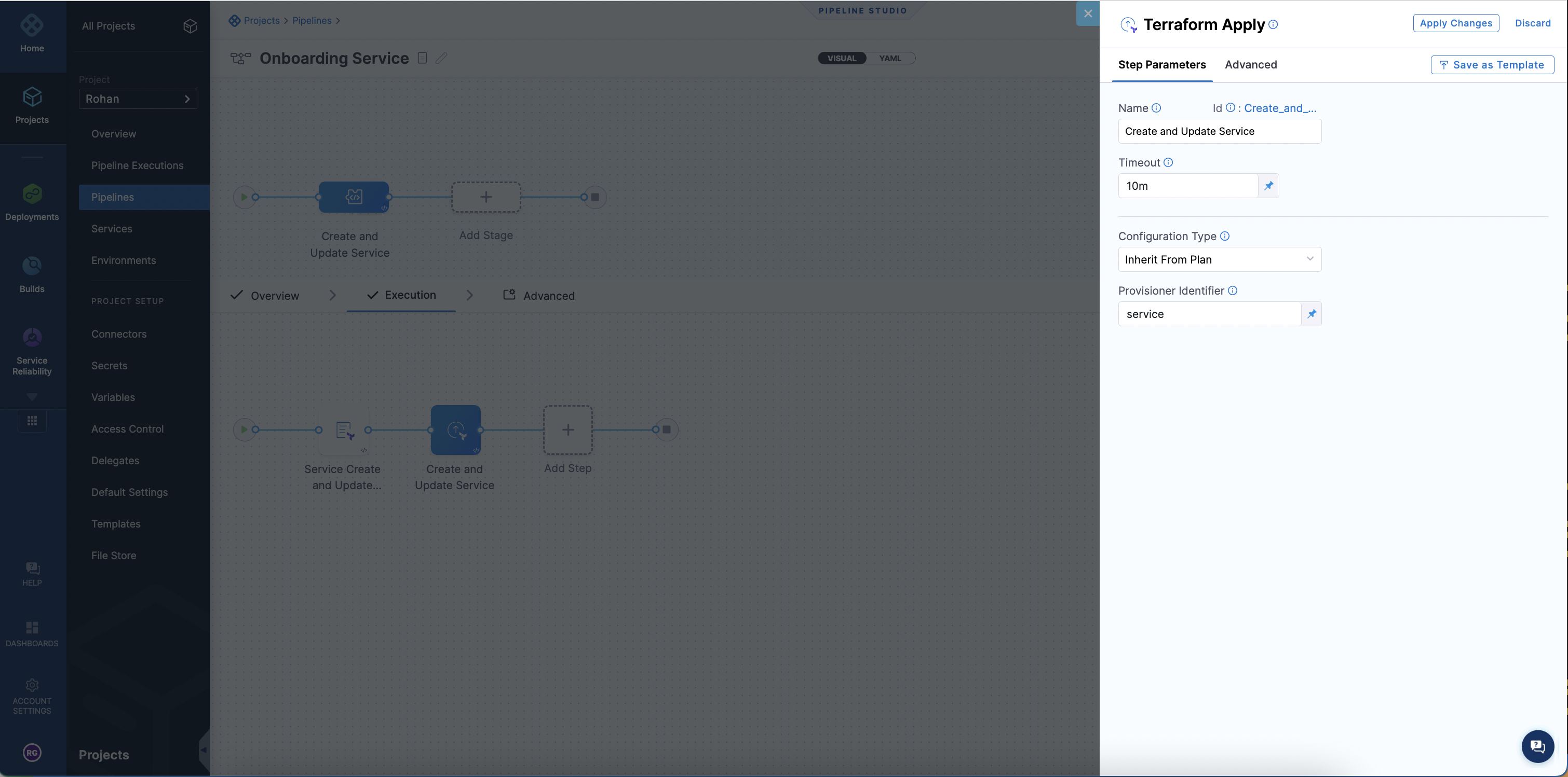 - Defining your resources like service, environment, infrastructure definition, etc. via Terraform is a one-way sync. By using Terraform, you define the object in Git. After you commit the change, a Harness pipeline provisions the resource to your account.