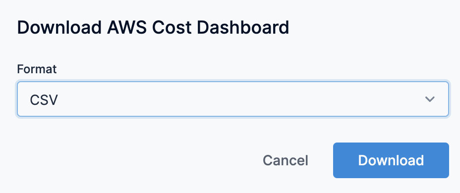 In Download AWS Cost Dashboard, in Format, select CSV from the Format drop-down menu.