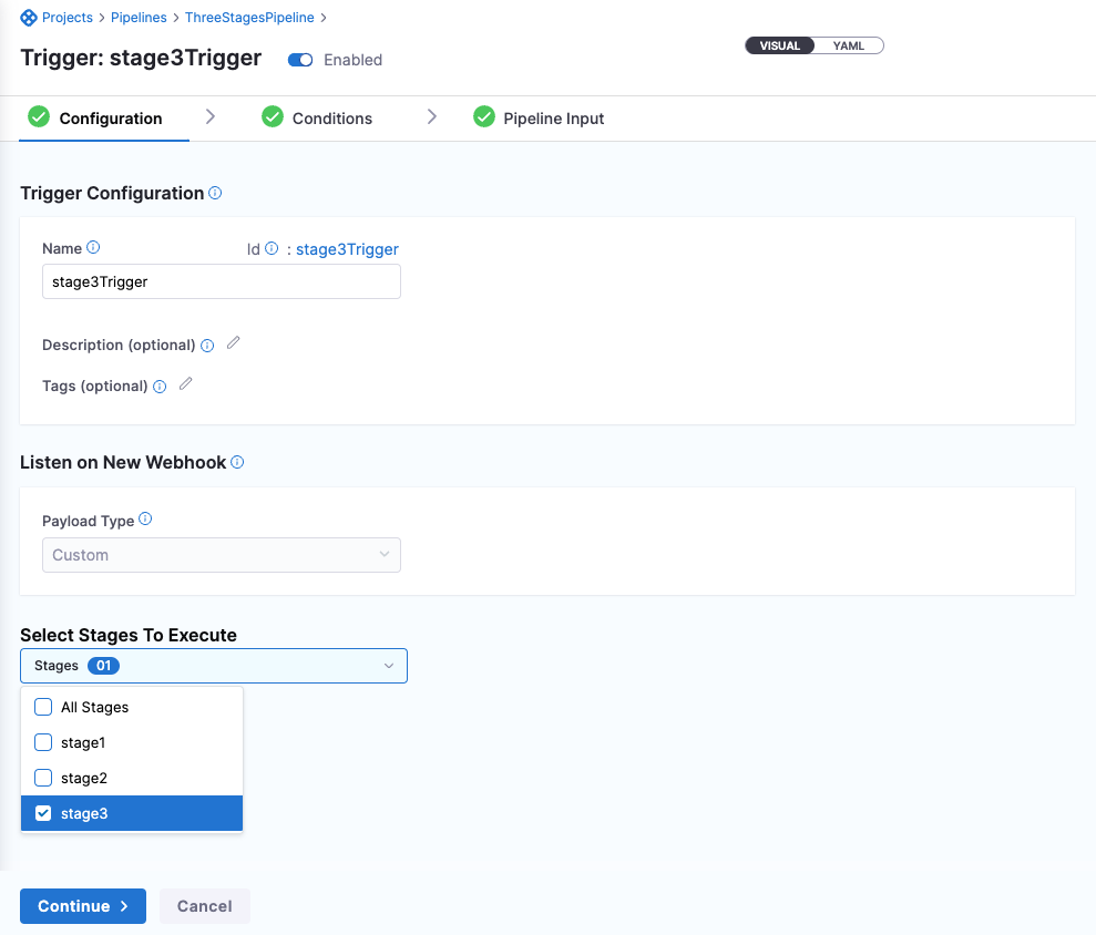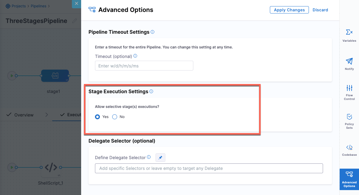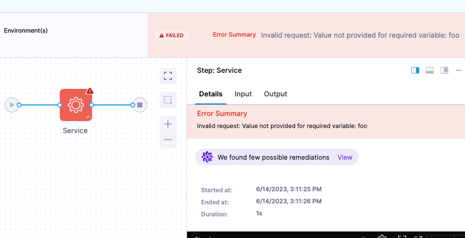 • Harness provides enhanced support for rollback stage action as part of manual intervention in case of Run step failure. With this enhancement, when you rollback a stage through manual intervention on failure of a Run step, it will execute the rollback stage action instead of failing. This enhancement is currently controlled by feature flag CDS_ROLLBACK_IN_STEPGROUP_MANUAL_INTERVENTION. Please contact Harness Support to enable this feature flag. (CDS-112366, ZD-85725, ZD-88581, ZD-88916)