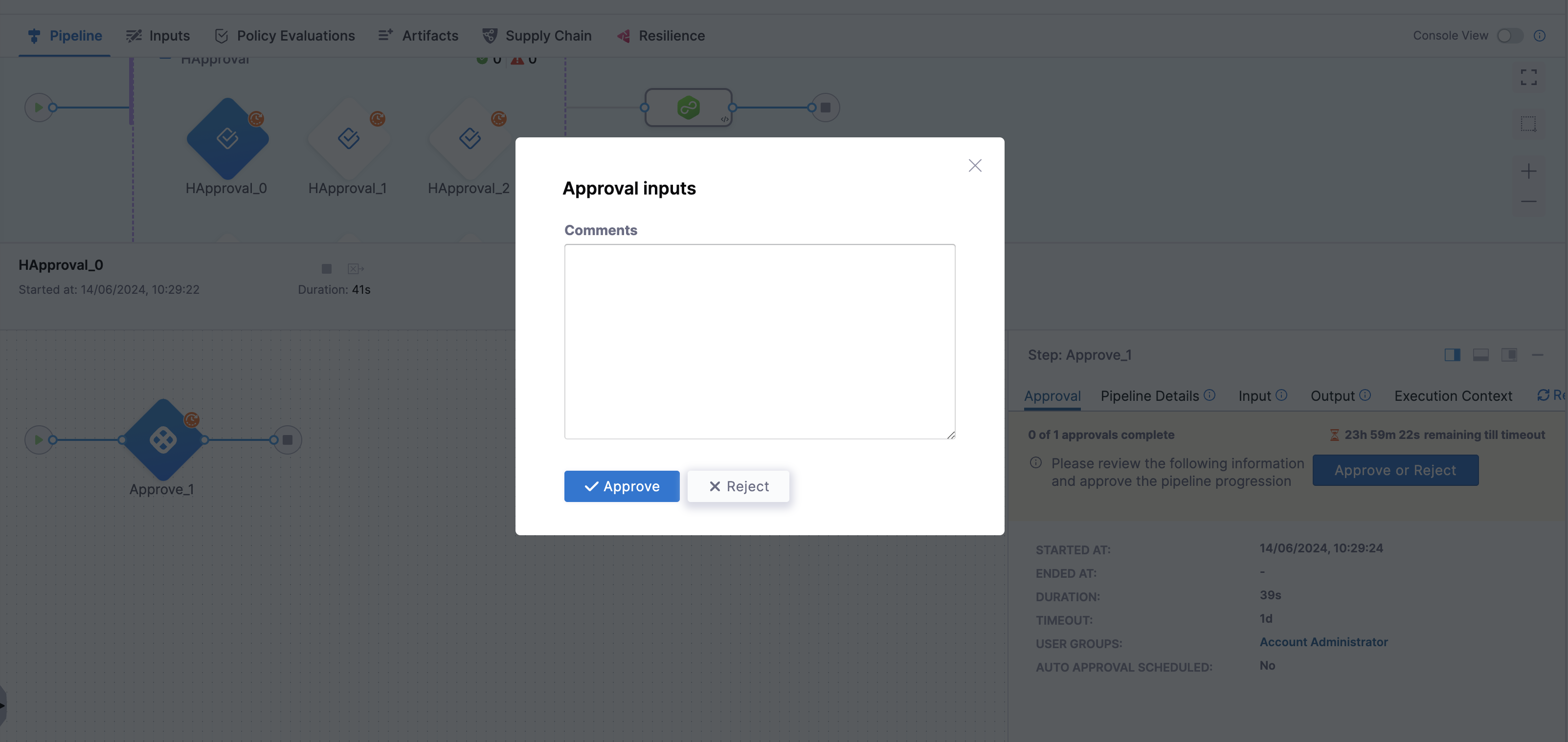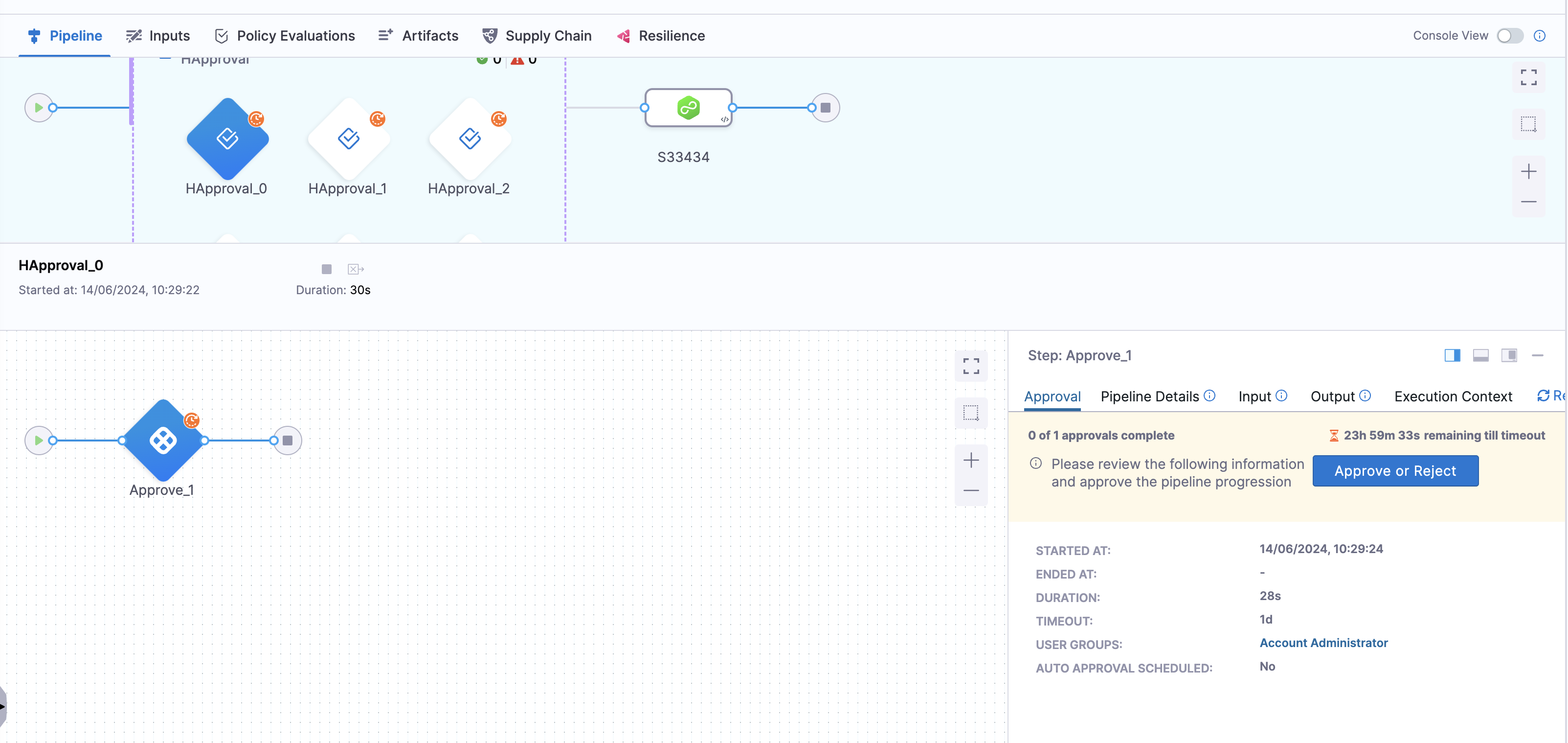 • When no Approval criteria is provided then pipeline execution fails with right error message but console view keeps loading (CDS-39560)