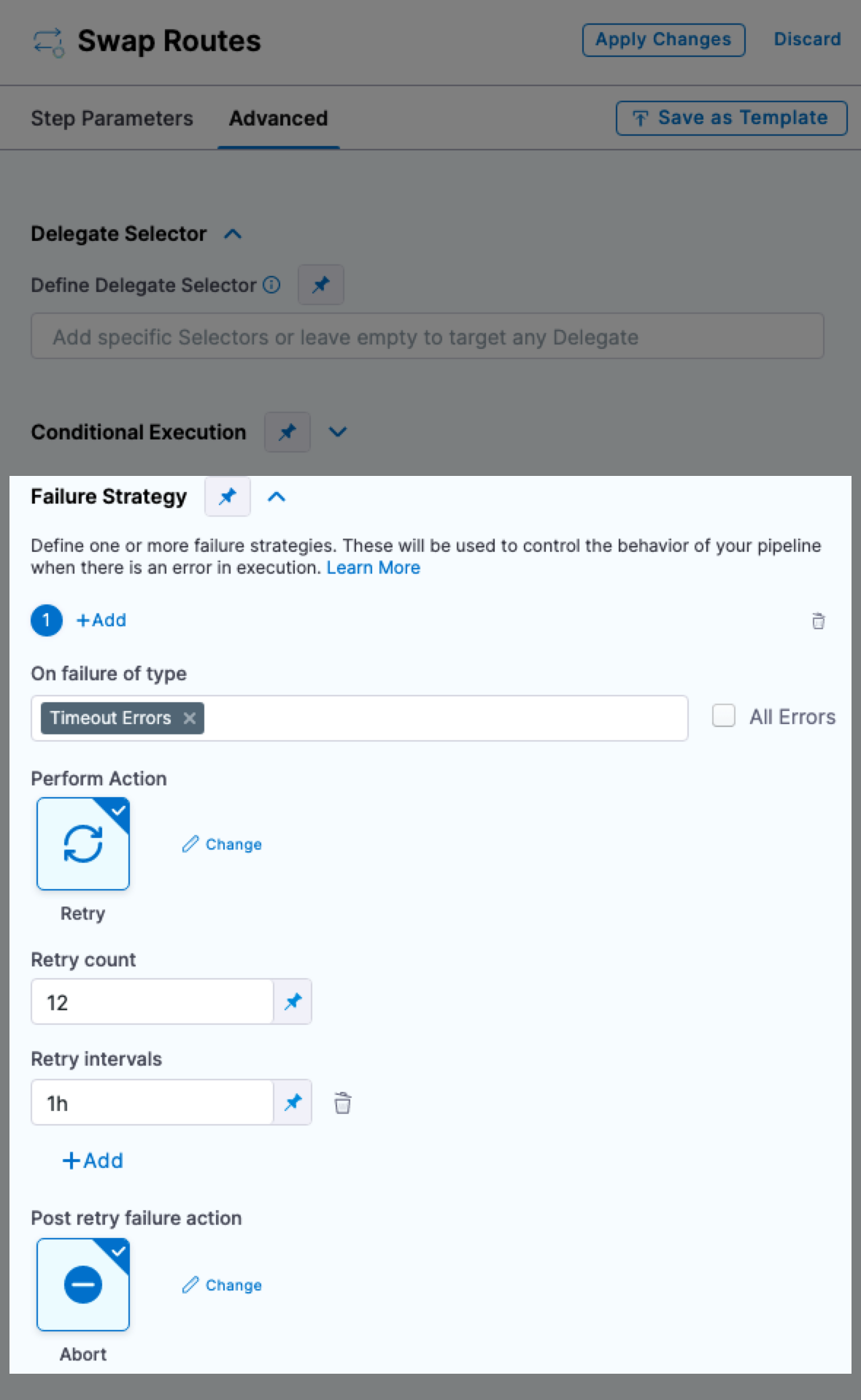 • Harness now provides pipeline rollback action in verify step failure strategies so users can choose rollback directly in advanced options. (CDS-114478, ZD-92214)