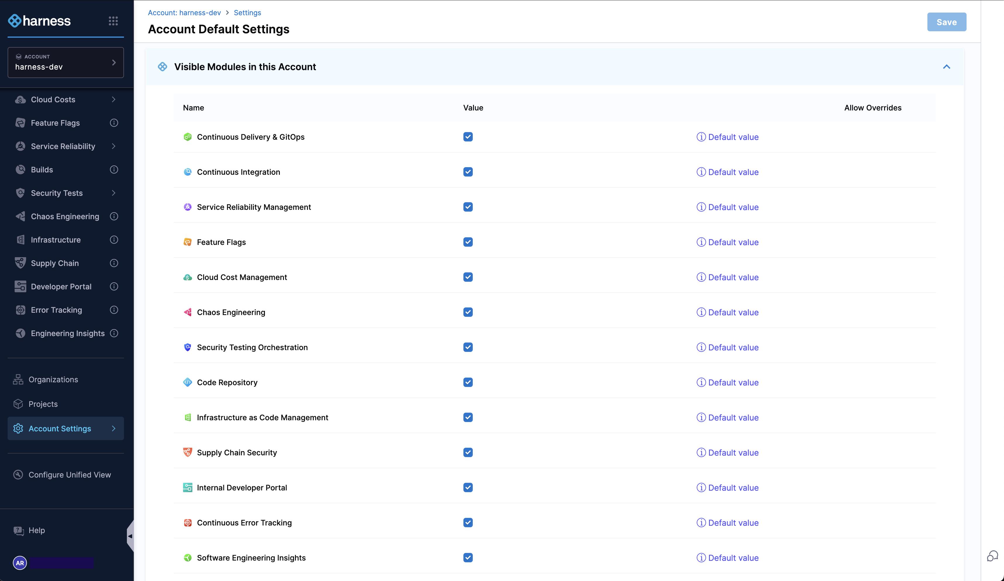 3. Default Resource Groups Configuration: The default resource groups at the account, organization, and project levels will automatically have these configurations enabled with all policies and all policy sets. This adjustment ensures there is no alteration in policy experience for users leveraging the default Harness resource groups.